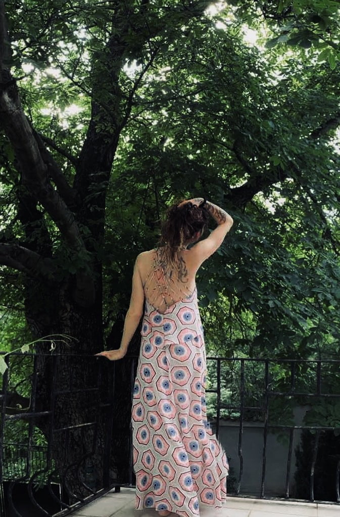 Феерична, дълга, много ефектна бохо рокля с интересен гръб от I.L.M.N.E, размер S